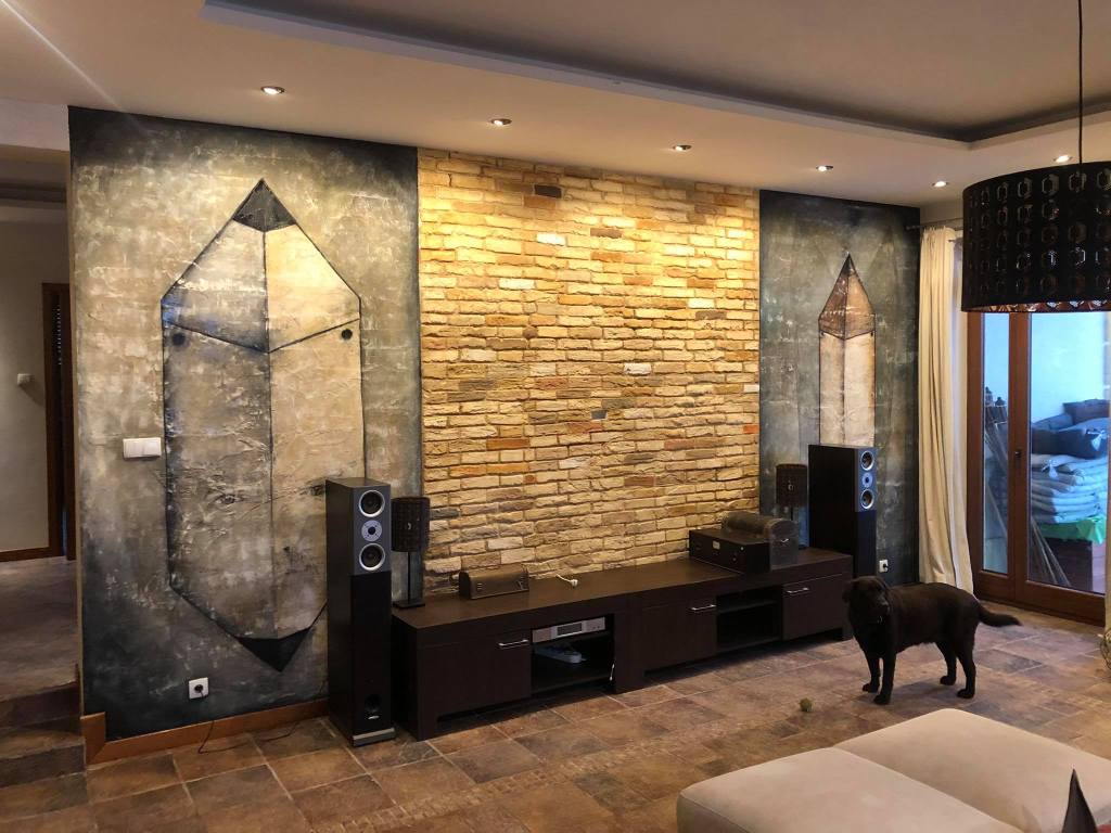 salon cegły z gipu i malarstwo ścienne